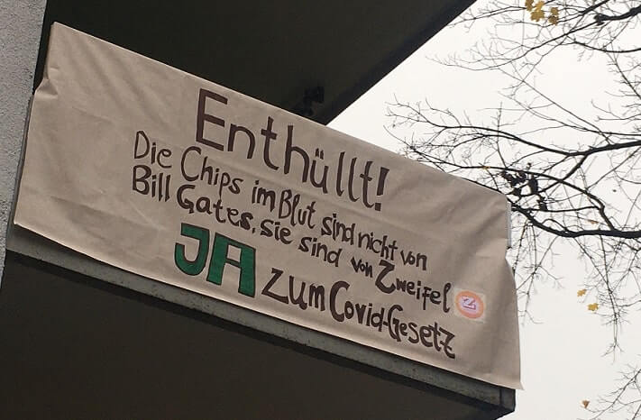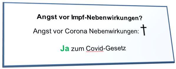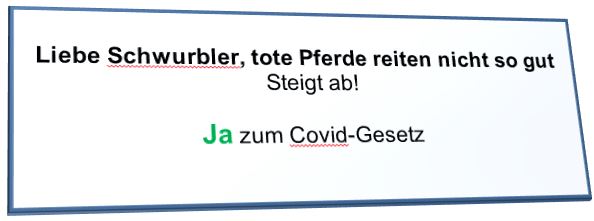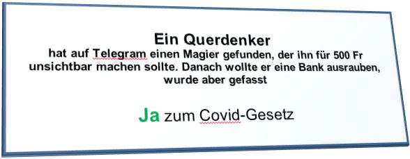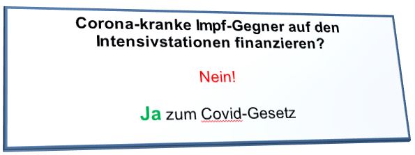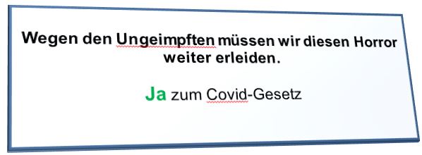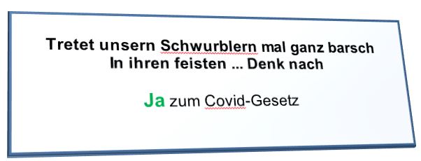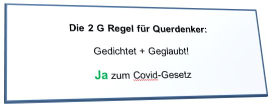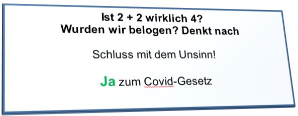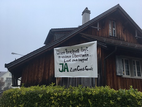 Die Schweiz besitzt die direkte Demokratie. Am 28. November gibt es eine Volksabstimmung über das von der Regierung (hier heißt sie "Bundesrat") verabschiedete neue Covid Gesetz. Die rechtsnationale Partei SVP ist als einzige Partei dagegen und hat diese Abstimmungen initiiert. Querdenker, Corona-Leugner, Impfgegner und Verschwörungstheoretiker unterstützen sie kräftig. Die SVP lehnt alle Massnahmen gegen die Pandemie (Ja, ALLE) ab.